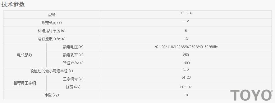 日本東洋TOYO TD1A電動(dòng)小車技術(shù)參數(shù):