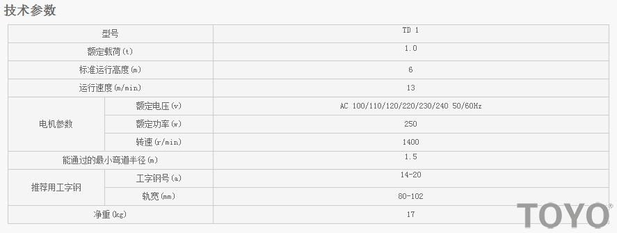 日本東洋TOYO TD1電動小車技術參數(shù):