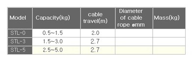 韓國三國STL加長系列彈簧平衡器技術(shù)參數(shù):