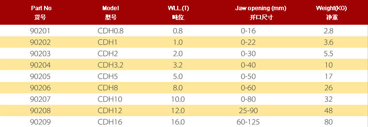 CDH系列豎吊鋼板起重鉗 荷載范圍:0.8-16T.