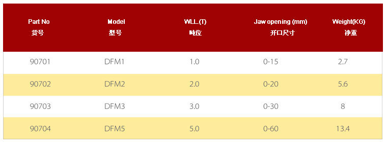 DFM系列模鍛翻轉起重鉗 額定載荷:1-5T