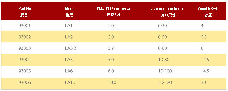 LA系列橫吊鋼板起重鉗 額定載荷:1.0-10T