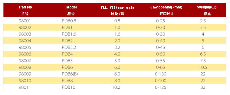PDB橫吊鋼板鉗 荷載范圍:0.8-10T.