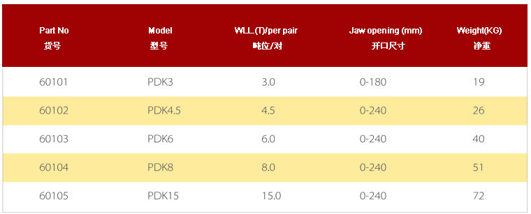 PDK系列層疊鋼板起重鉗 額定載荷:3-15T