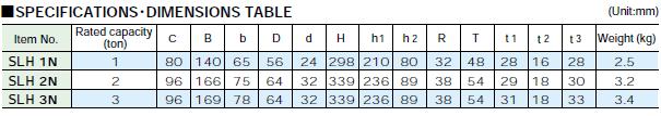 日本世霸SLH螺旋鎖緊吊夾具技術(shù)參數(shù):