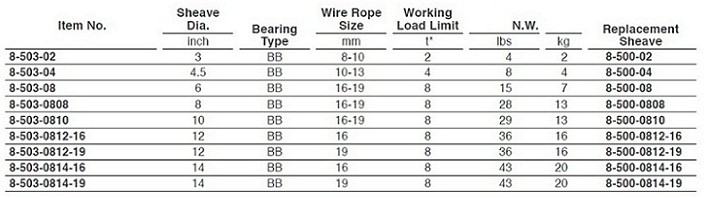 臺(tái)灣振鋒YOKE8-503固定式滑車技術(shù)參數(shù):