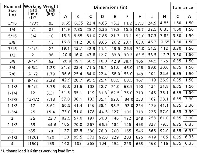 青島大洋G2130型熱鍍鋅模鍛卸扣技術(shù)參數(shù):