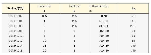 橋防防爆防爆手拉單軌行車技術(shù)參數(shù):