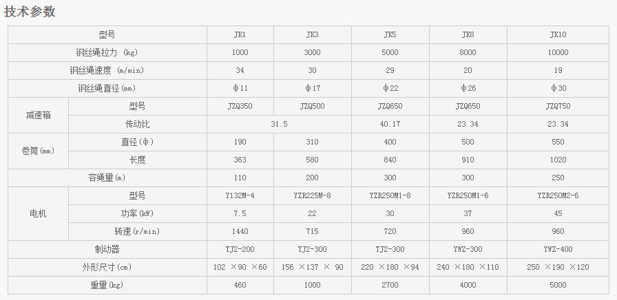 浙江凱勛JK1-JK10建筑卷揚機技術(shù)參數(shù):
