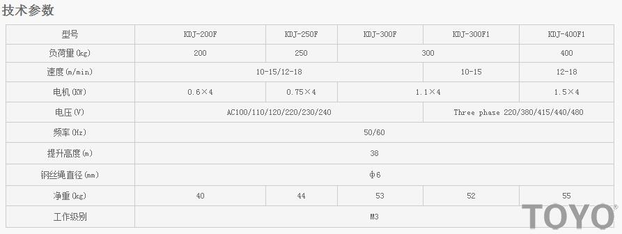 日本東洋TOYO KDJ-200F-400F-200F1-400F1電動卷揚(yáng)機(jī)技術(shù)參數(shù):
