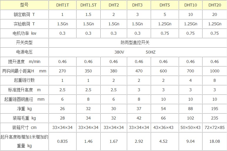 DHT型環(huán)鏈電動葫蘆是小型起重設備,廣泛使用于工礦企業(yè)、倉庫、商業(yè)、醫(yī)藥衛(wèi)生及飲食服務。一、環(huán)鏈電動葫蘆集電動葫蘆和手拉葫蘆的優(yōu)點于一身,采用盤式制動電機作動力。二、行星減速器減速,具有結構緊湊、體積小、重量輕、效率高、使用方便。三、制動可靠、維護簡單等特點。適用于低速小行程的物料裝卸、設備安裝、礦山及工程建筑等方面。