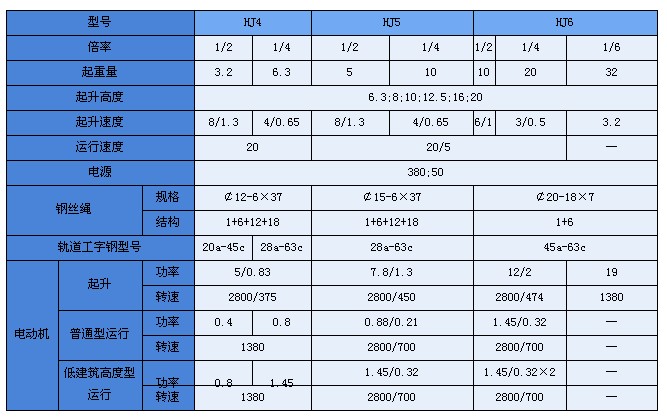 HJ型建筑用電動葫蘆,具有結構緊湊、有效起升高等特點,特別適用于建筑高度較低的廠房內。根據用戶的不同要求可提供帶雙制動、超速限制、超載限制和具有手動釋放功能的電動葫蘆。