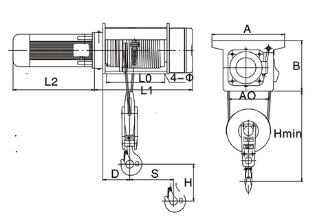 SH固定式鋼絲繩電動葫蘆(滑輪倍率2/1):