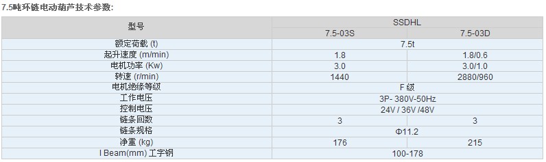 江蘇佳力TXK7.5噸環(huán)鏈電動葫蘆技術(shù)參數(shù):