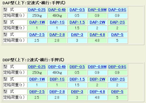 日本DA-DB型象牌電動(dòng)葫蘆具體規(guī)格: