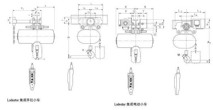 Lodestar電動(dòng)環(huán)鏈葫蘆吊鉤或集成小車式: