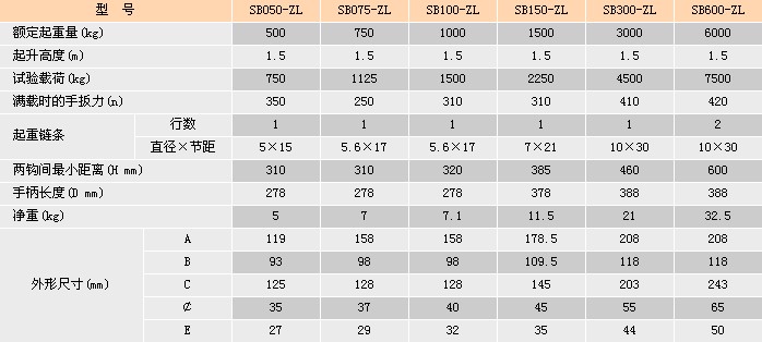 浙江手牌SB-ZL型手扳葫蘆技術(shù)參數(shù):