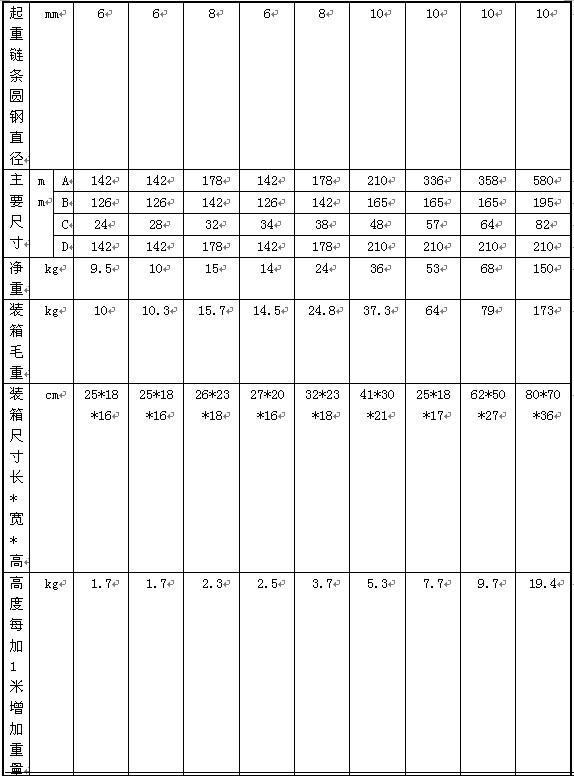 重慶凱榮5噸HSZ型系列手拉葫蘆技術(shù)參數(shù):
