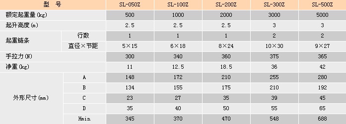 浙江手牌SL-Z型手拉葫蘆技術(shù)參數(shù):