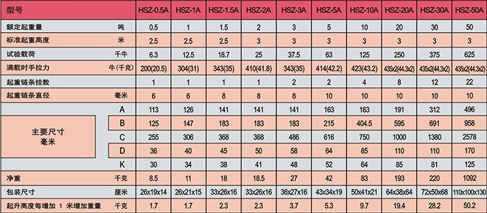 HSZ-A 620 型手拉葫蘆(C型):