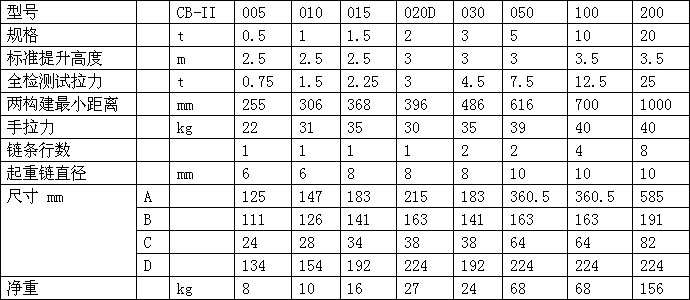 美國艾培爾 CB-2 手拉葫蘆 技術參數(shù)表如下: