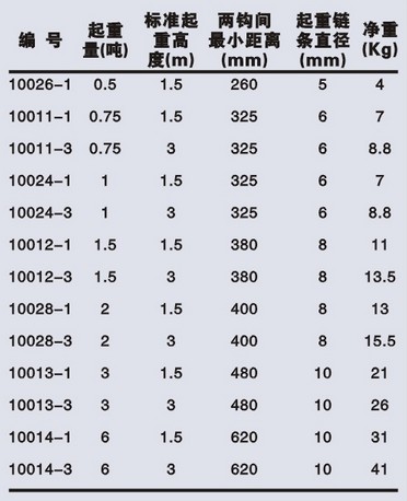 本款手拉葫蘆技術(shù)參數(shù)表如下: