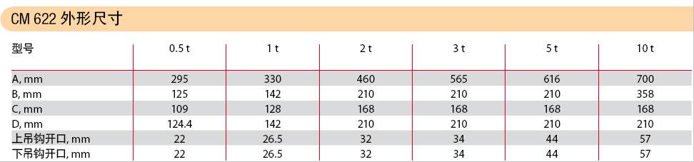 美國科美CM622型手拉環(huán)鏈葫蘆技術參數(shù):