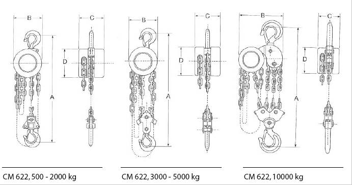 美國科美CM622型手拉環(huán)鏈葫蘆外形尺寸: