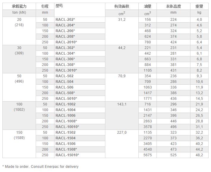 美國(guó)恩派克RACL-系列鋁制螺母鎖定油缸技術(shù)參數(shù):