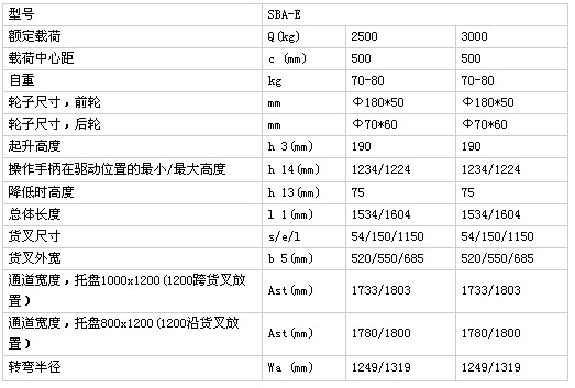 浙江儲力SBA-E25(30)手動液壓搬運(yùn)車技術(shù)參數(shù):