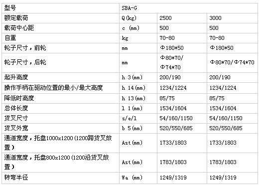 浙江儲(chǔ)力SBA-G鍍鋅搬運(yùn)車(chē)技術(shù)參數(shù):