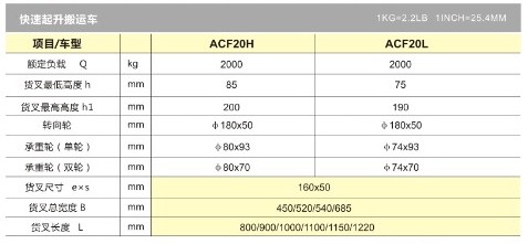 浙江諾力ACF20快速提升搬運(yùn)車技術(shù)參數(shù):
