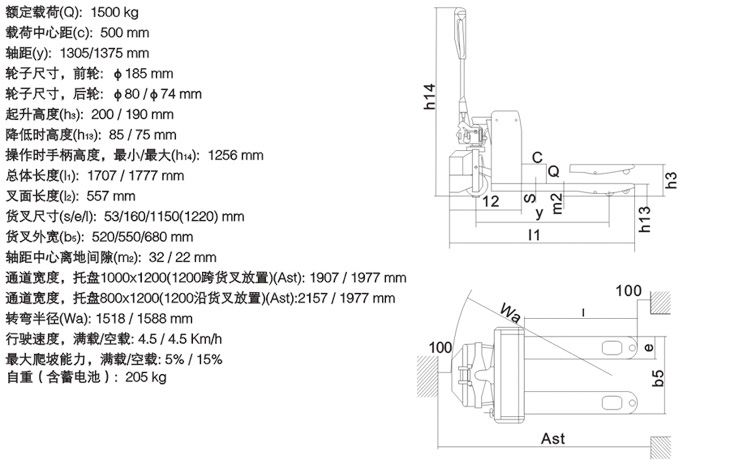 浙江西林CBD10A-(III)平板搬運車技術參數(shù):
