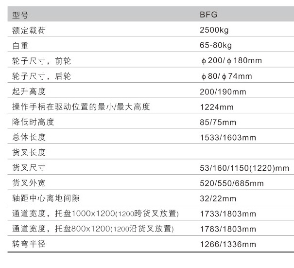 浙江西林BFG平板搬運(yùn)車(chē)技術(shù)參數(shù):