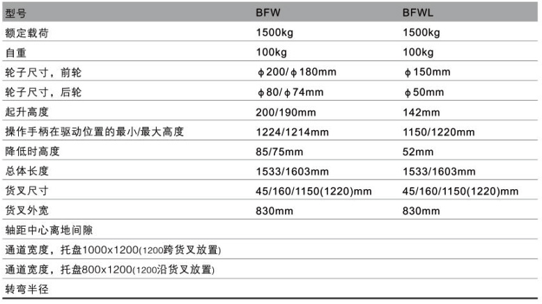 浙江西林BFWBFWL平板搬運(yùn)車技術(shù)參數(shù):