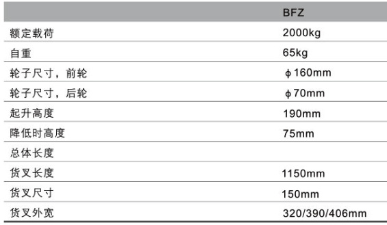 浙江西林BFZ型平板搬運車技術(shù)參數(shù):