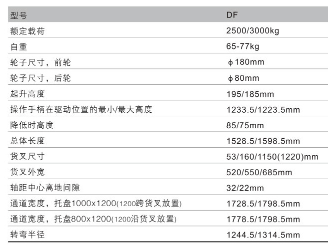浙江西林DF型平板搬運(yùn)車技術(shù)參數(shù):