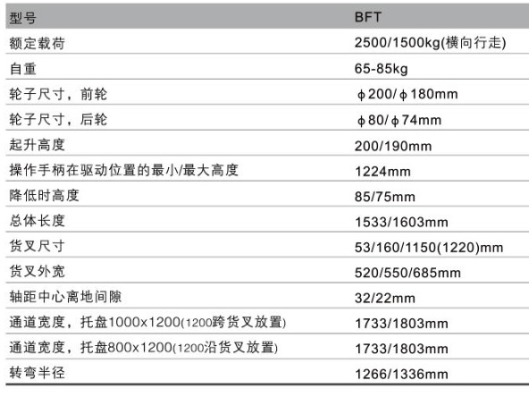 浙江西林BFT型平板搬運(yùn)車技術(shù)參數(shù):