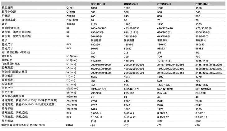 浙江西林CDD10B/CDD15B堆高車技術參數(shù):