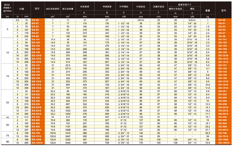 美國(guó)EAGLE ES/單作用通用液壓缸技術(shù)參數(shù):