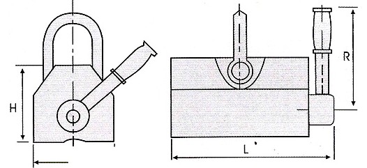 型號 | 額定起重力(kg) | 外形尺寸(mm) | 試驗最大拉脫力(kg) | 重量(kg) | ||||