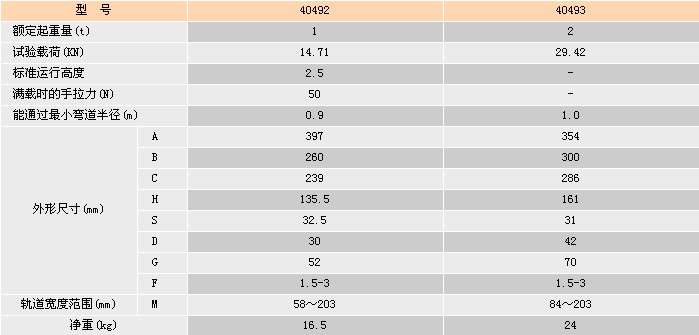 浙江手牌40492/40493型手推/手鏈單軌小車技術(shù)參數(shù):